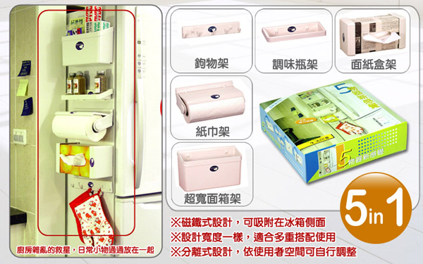 ◆5件式組合紙巾、瓶罐....等物品一把罩:一堆哩哩扣扣的廚房雜物都可以收,看起來很方便