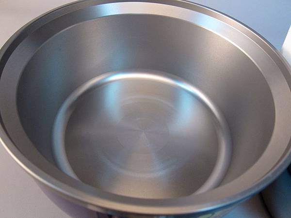 ▲外鍋是不鏽鋼鋁合金材質,一整個閃閃發亮,看起來直接用外鍋煎、炒東西也沒問題(更正,鋁合金不能直接烹調)。同事看到時直說這材質比他新買的大同電鍋還好